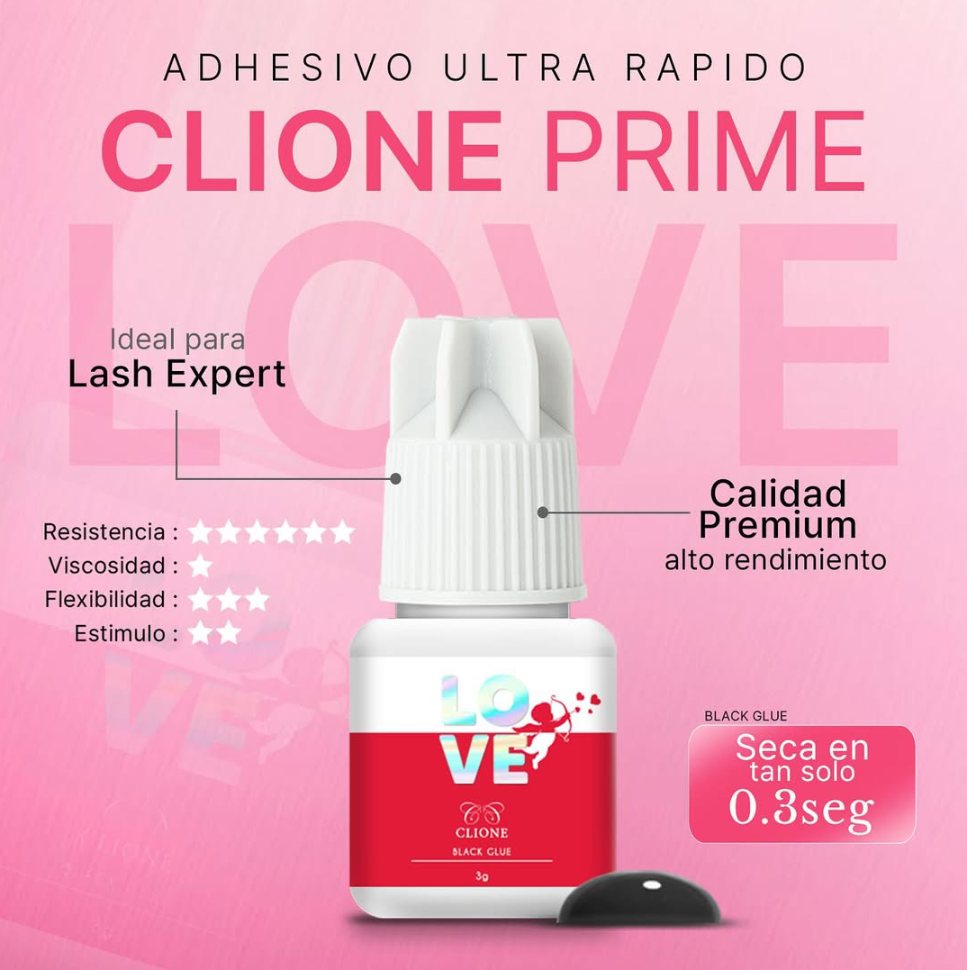 Pegamento para extensiones de pestañas Clione Prime Love, con un tiempo de secado increíblemente rápido de tan solo 0,3 segundos. ¡Imagina la agilidad y precisión que este pegamento puede aportar a tus extensiones de pestañas!